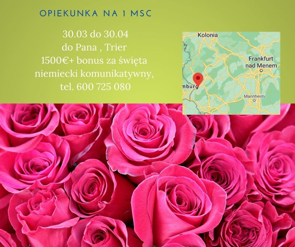 Wymagania: Szukam opiekunki z komunikatywną znajomością j.niemieckiego.