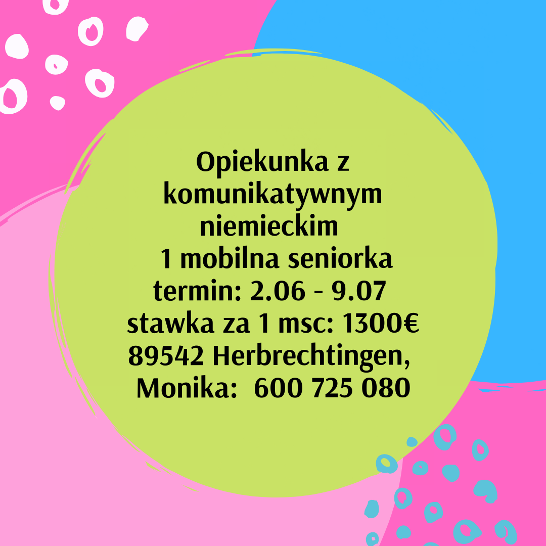 Szukam opiekunki ze znajomością j. niemieckiego na poziomie komunikatywnym