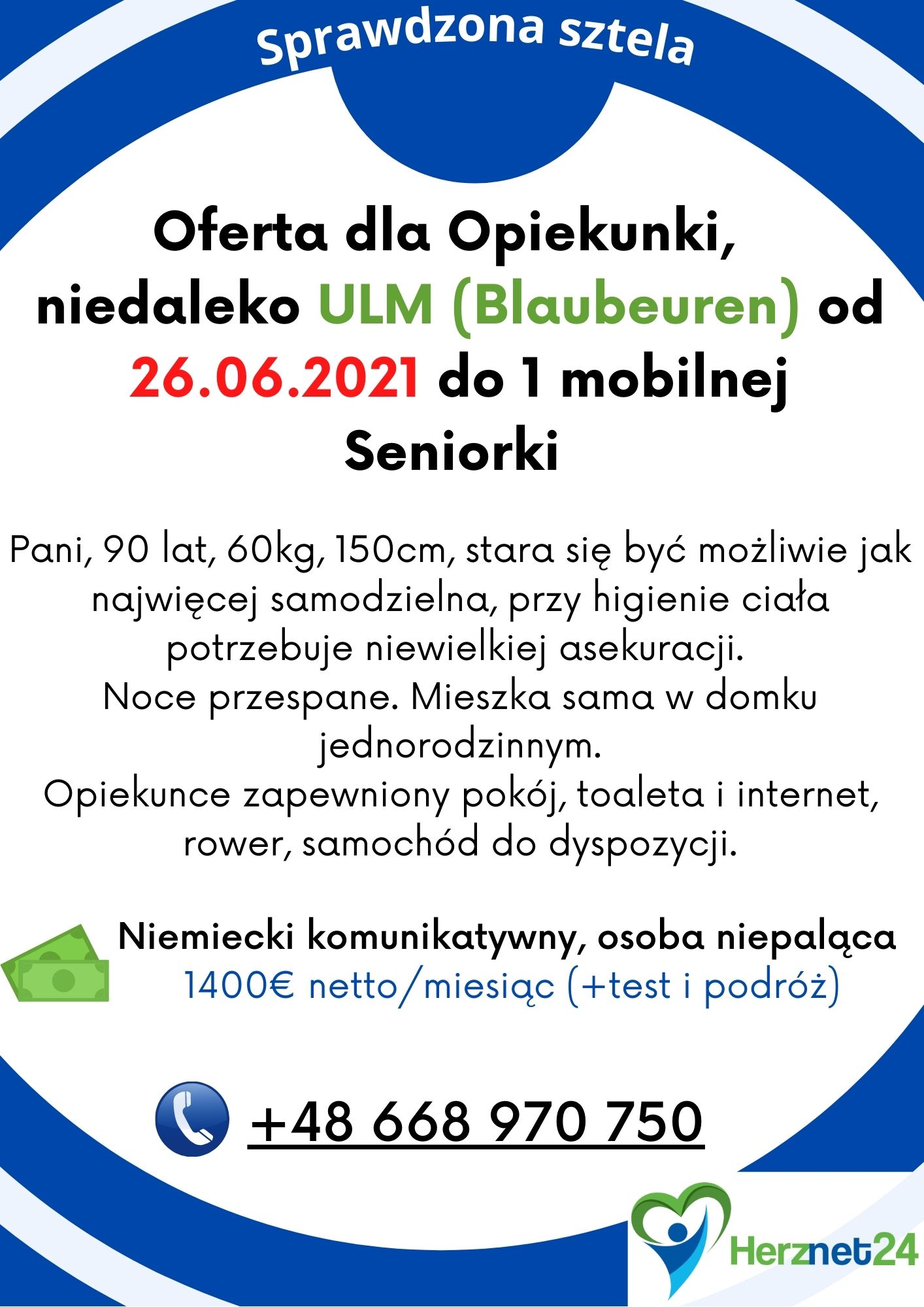 Wynagrodzenie: 1400€ netto za miesiąc