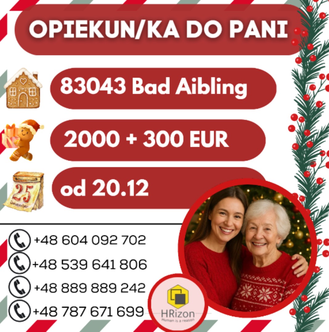 📞Kontakt: osoby zainteresowane prosimy o kontakt w wiadomości prywatnej lub lub o wysłanie sms o treści: ,,opiekunka-83043 Bad Aibling" pod numer: 889889242 - oddzwonimy