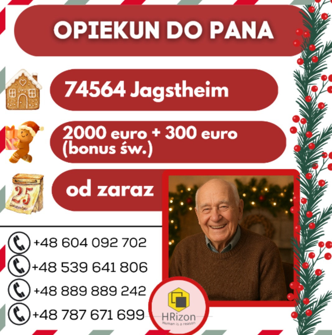 Kontakt: osoby zainteresowane prosimy o kontakt w wiadomości prywatnej lub lub o wysłanie sms o treści: ,,opiekun-74564 Jagstheim ” pod numer: 889889242 - oddzwonimy