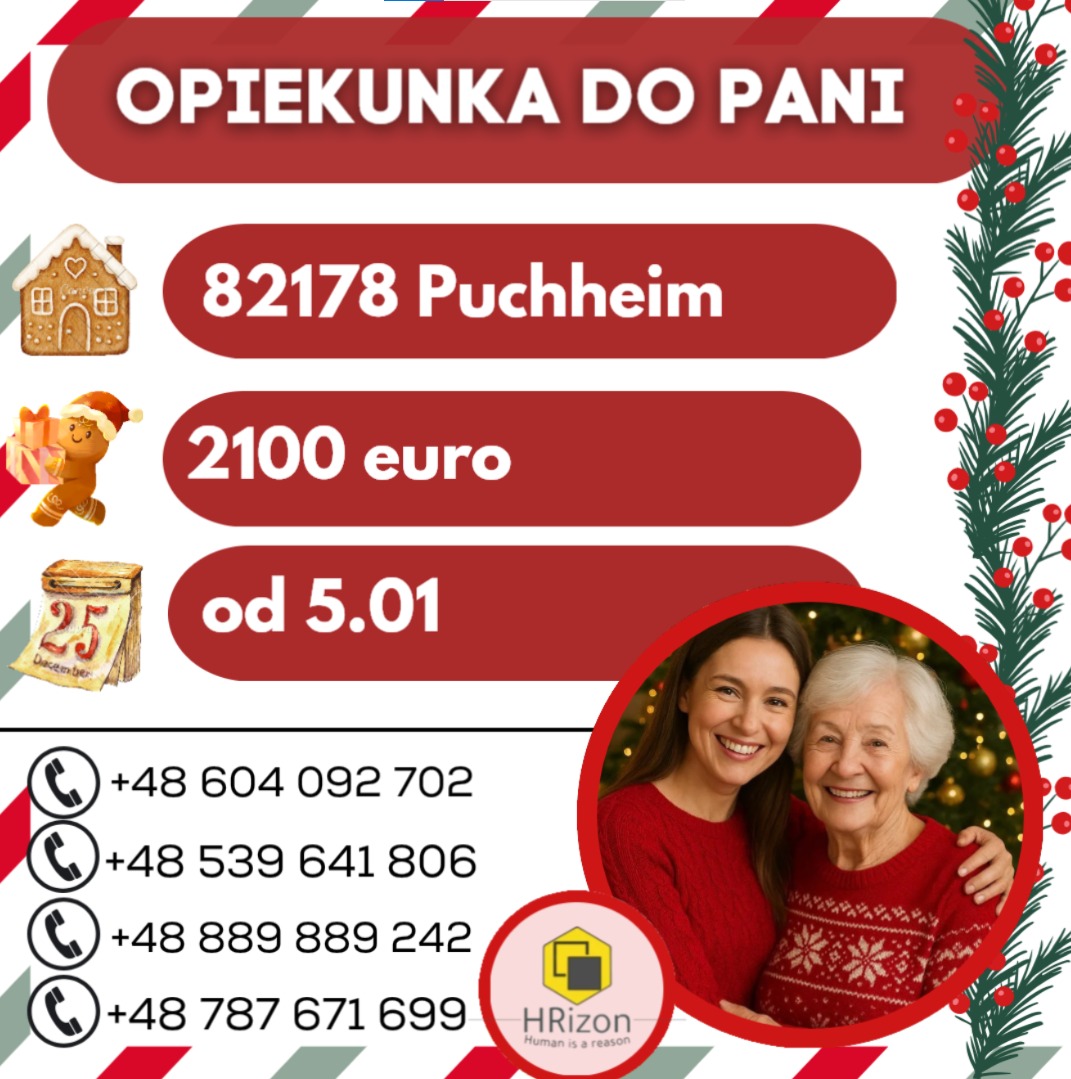Kontakt: osoby zainteresowane prosimy o kontakt w wiadomości prywatnej lub lub o wysłanie sms o treści: ,,opiekunka-82178 Puchheim" pod numer: 889889242 - oddzwonimy