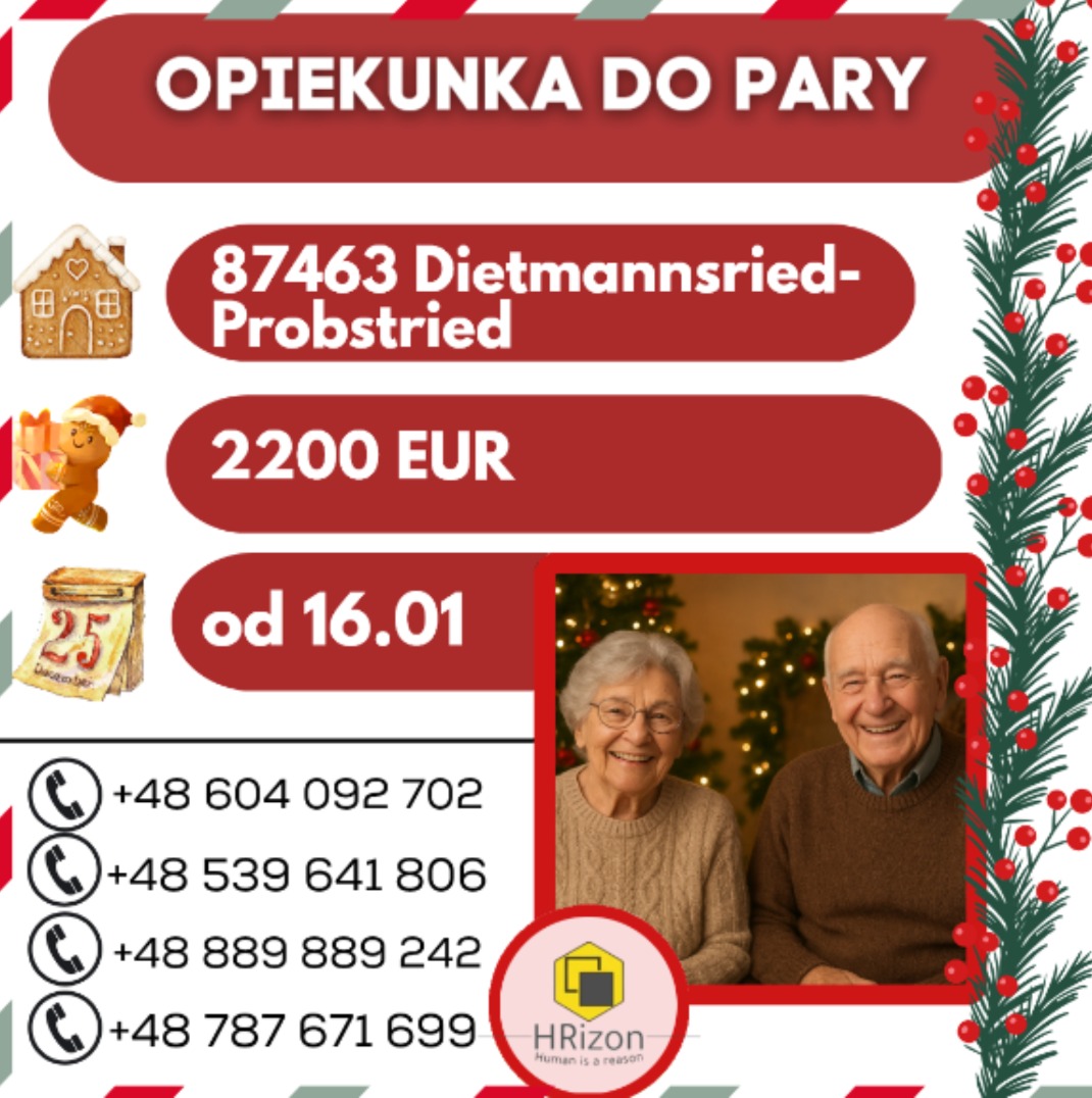 Kontakt: osoby zainteresowane prosimy o kontakt w wiadomości prywatnej lub lub o wysłanie sms o treści: ,,opiekun/ka-87463 Dietmannsried-Probstried" pod numer: 889889242 - oddzwonimy