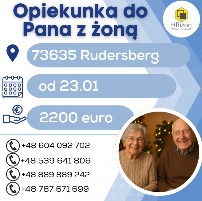 Kontakt: osoby zainteresowane prosimy o kontakt w wiadomości prywatnej lub lub o wysłanie sms o treści: ,,opiekunka-73635 Rudersberg" pod numer: 889889242 - oddzwonimy