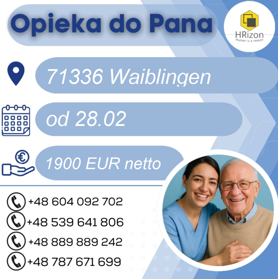 Szukamy opiekunki z komunikatywnym językiem niemieckim do bardzo spokojnego seniora.