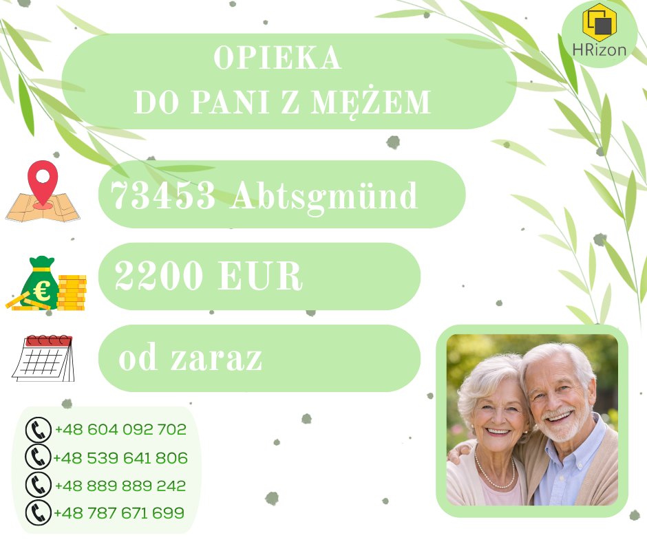 OPIEKA DO PANI Z MĘŻEM – OD ZARAZ
