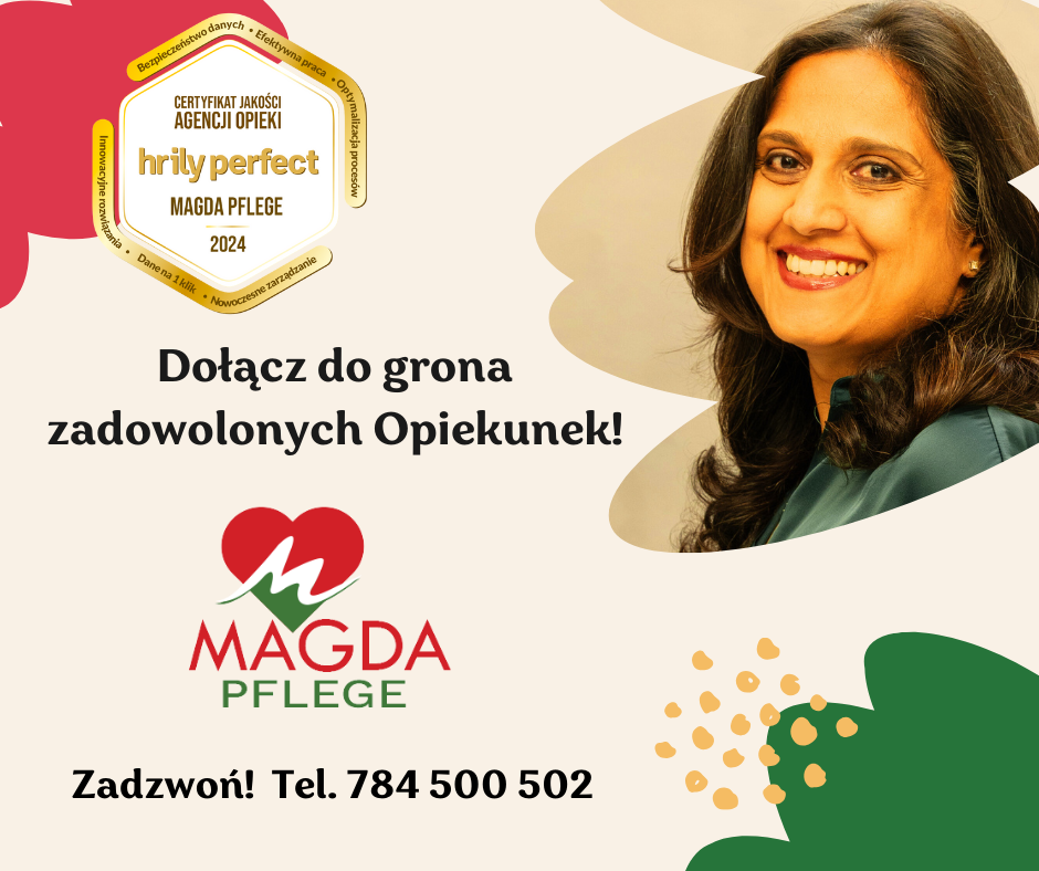 MAGDA PFLEGE sp. z o.o. to agencja pracy z blisko 10-letnim doświadczeniem, która specjalizuje się w legalnym zatrudnianiu opiekunek osób starszych w Niemczech. Jako firma o ugruntowanej pozycji na rynku od lat współpracujemy wyłącznie z zaufanymi niemieckimi partnerami, stawiając na pierwszym miejscu bezpieczeństwo i komfort naszych pracowników. Wiemy, jak wymagająca bywa praca z osobami starszymi, dlatego dokładamy wszelkich starań, byś nie musiała się o nic martwić. Poszukujemy zaangażowanych Opiekunów, oferując im pełne wsparcie na każdym etapie realizacji zlecenia.