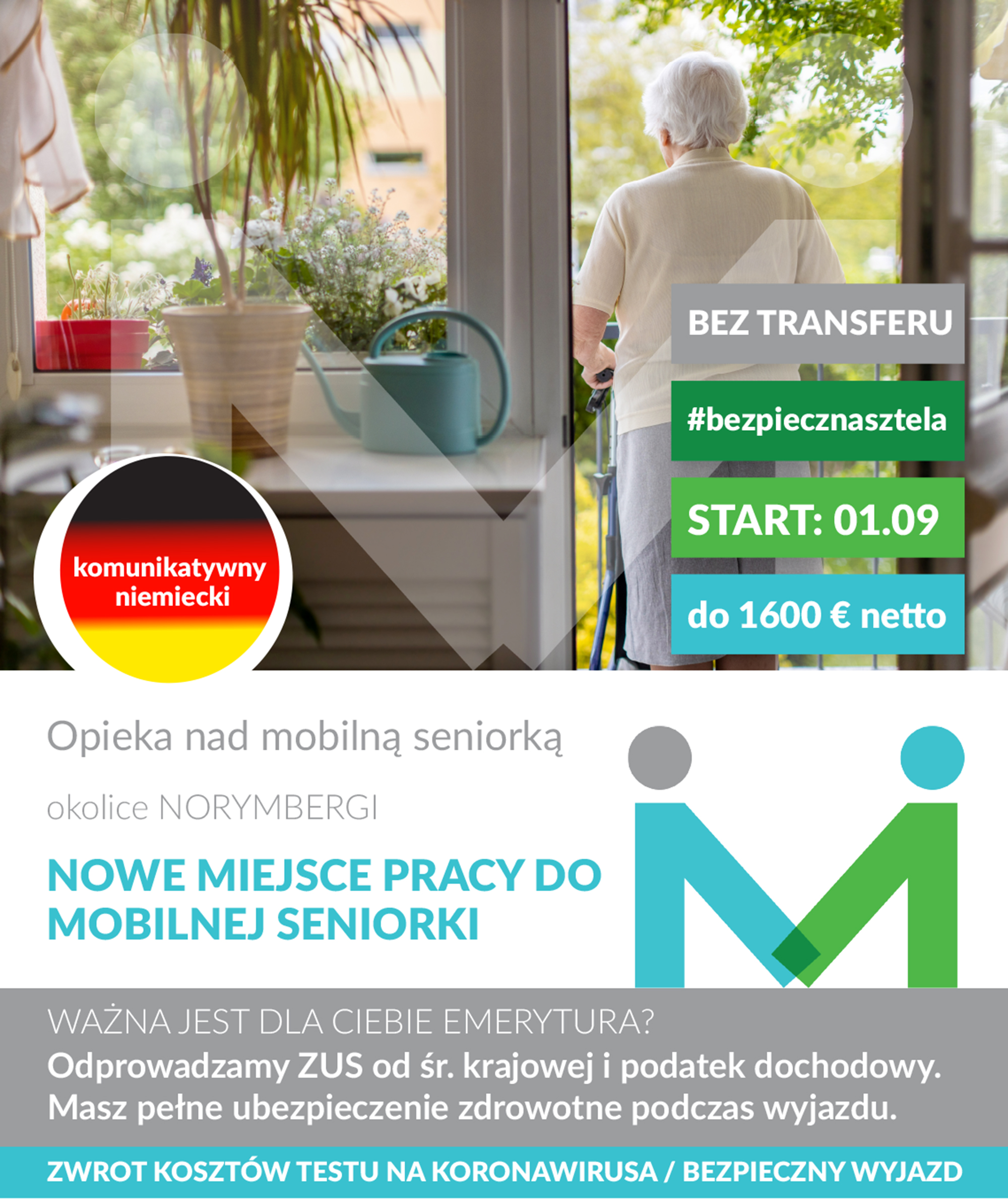 ➕Nowe Zlecenie do mobilnej Podopiecznej okolice Norybmergi (BAWARIA) od 1 września!