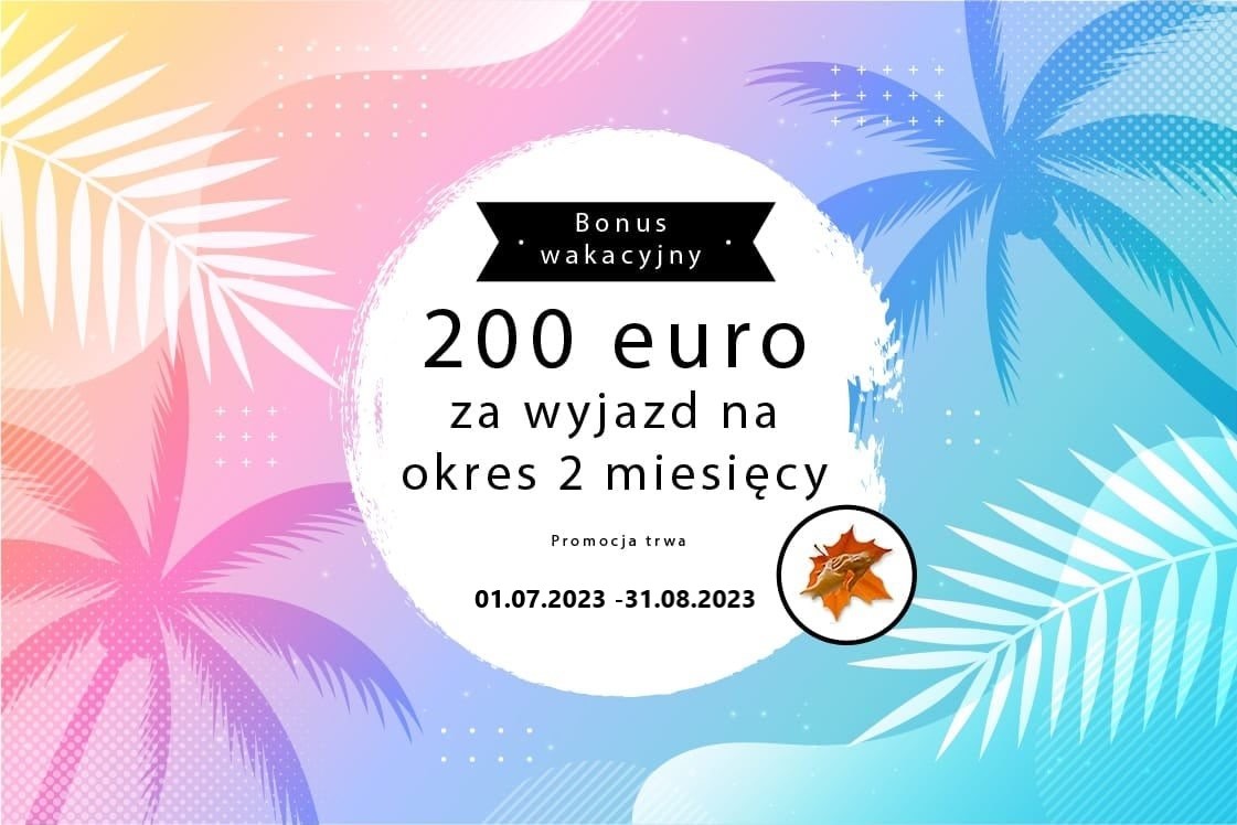 Wyjazd dla pani z dobrym niemieckim na 05.07 , stawka 1600 euro netto + opłacony przejazd + 200 euro premii przy wyjeździe na 2 miesiące