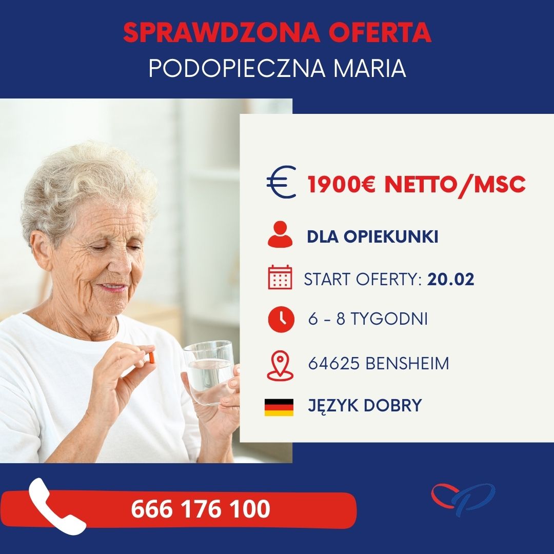 Do opieki Seniorka w wieku 90 lat (157 cm, 65 kg). Choruje na artrozę oraz inkontynencję. Seniorka ma problemy ze wzrokiem, nosi okulary. Orientacja i komunikacja dobre. Porusza się na wózku inwalidzkim, wymaga transferu. Dostępny jest lift oraz łóżko specjalistyczne. Noce przesypia.