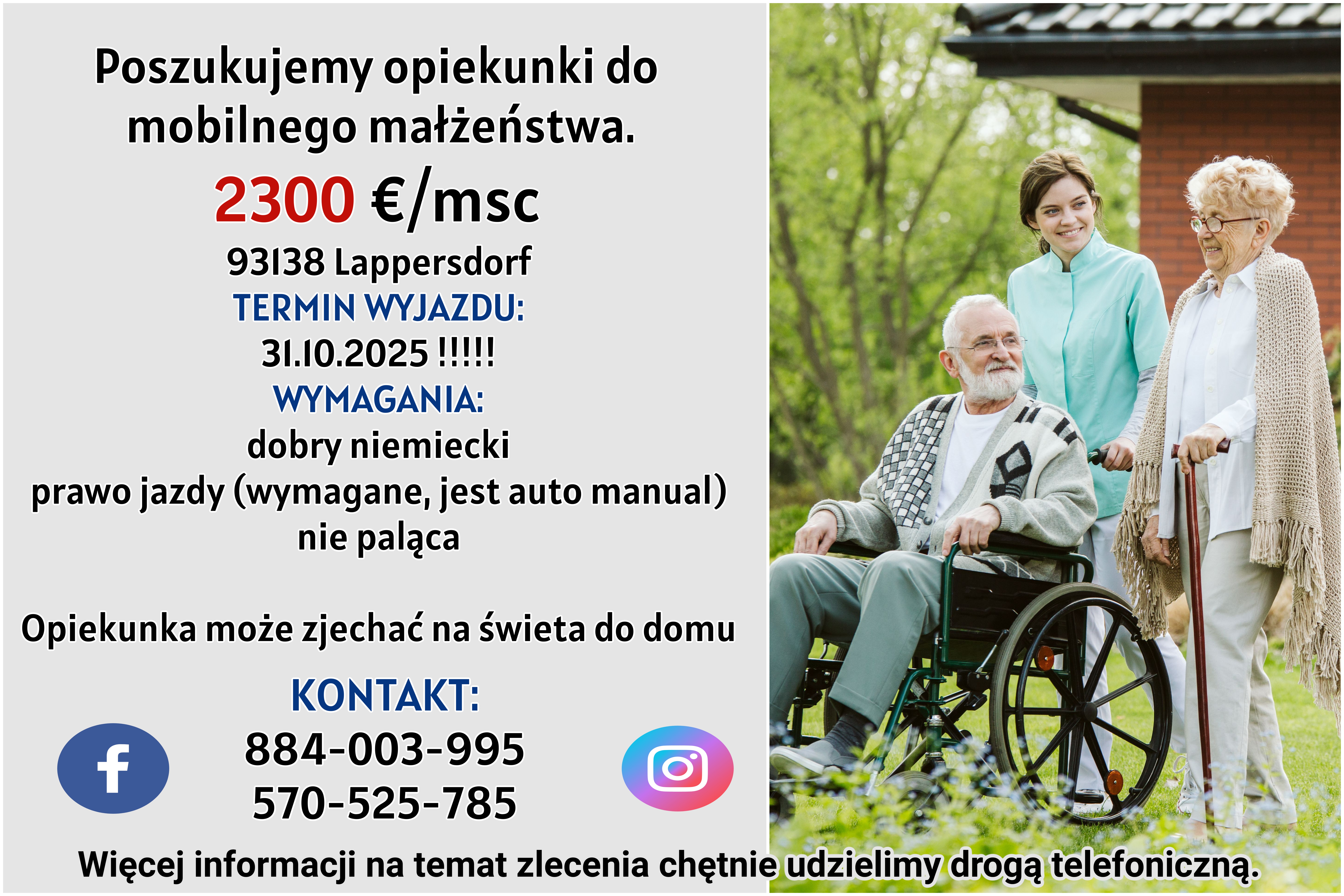 Poszukujemy opiekunki do mobilnego małżeństwa.