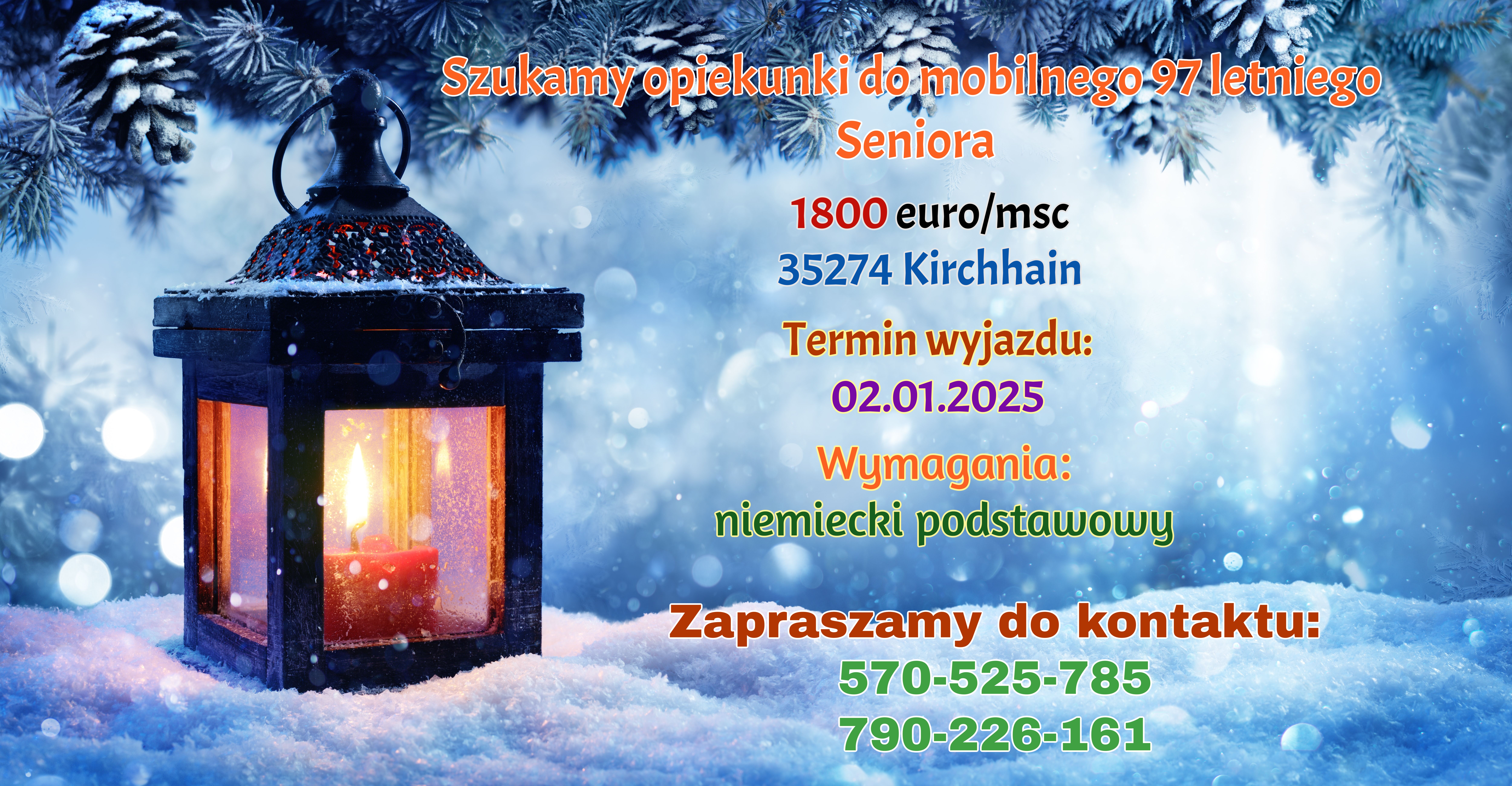 Poszukujemy opiekunki do mobilnego 97 letniego seniora.