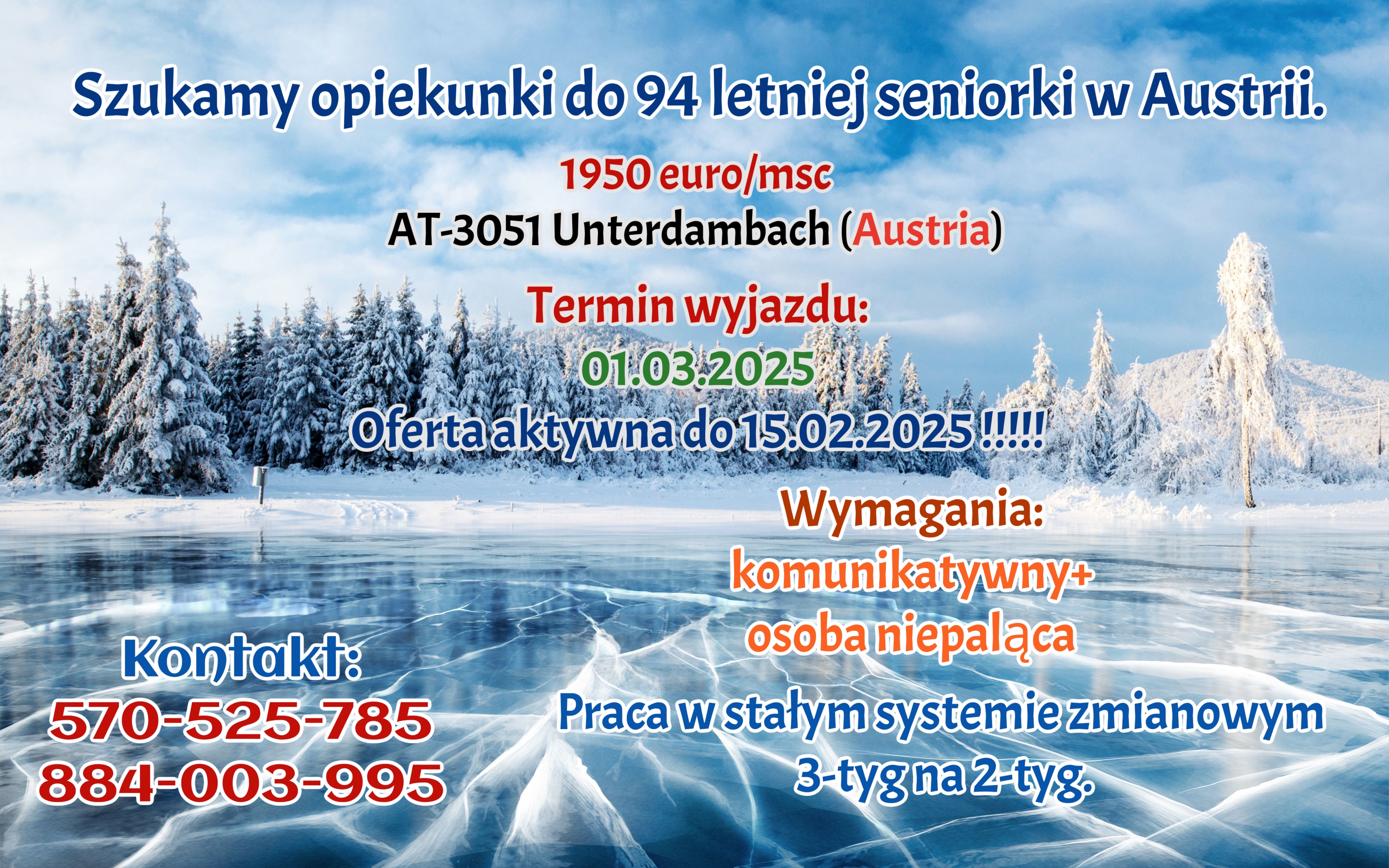 Poszukujemy opiekunki do 94 letniej seniorki w Austrii.