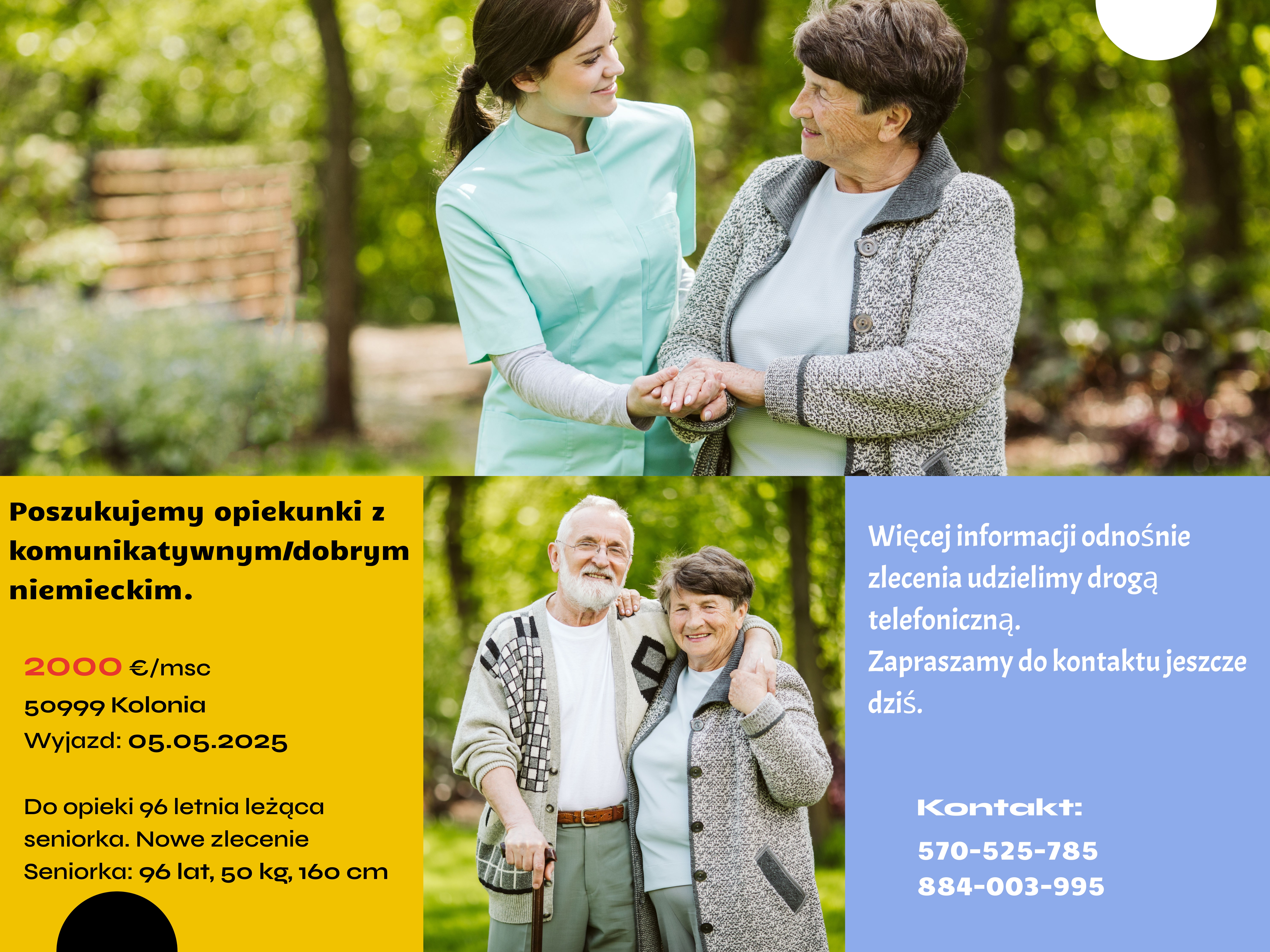 Osoba do opieki: Pani: 96 lat, 50 kg, 160 cm 👵