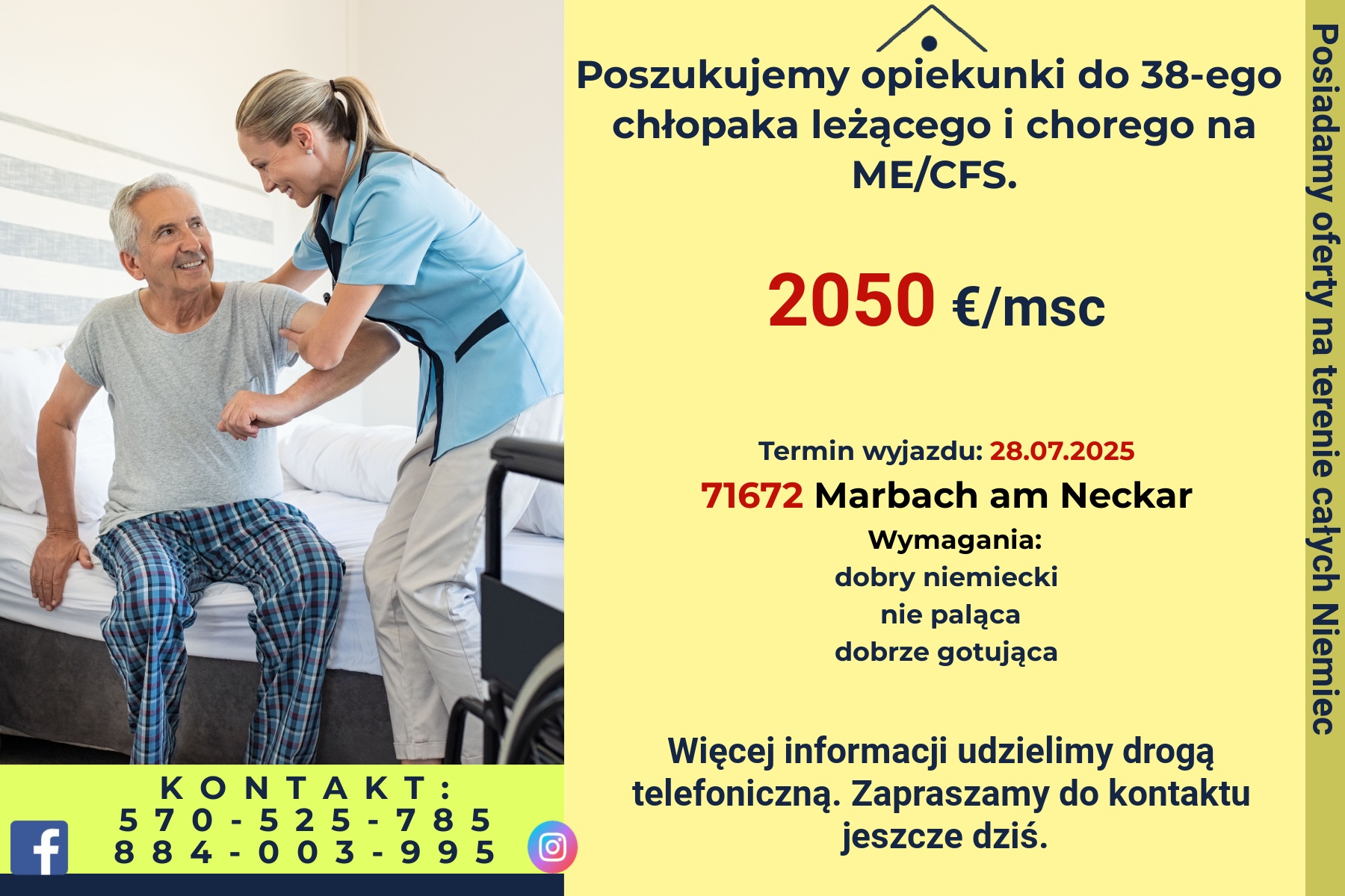 Poszukujemy opiekunki do 38-ego chłopaka leżącego i chorego na ME/CFS.