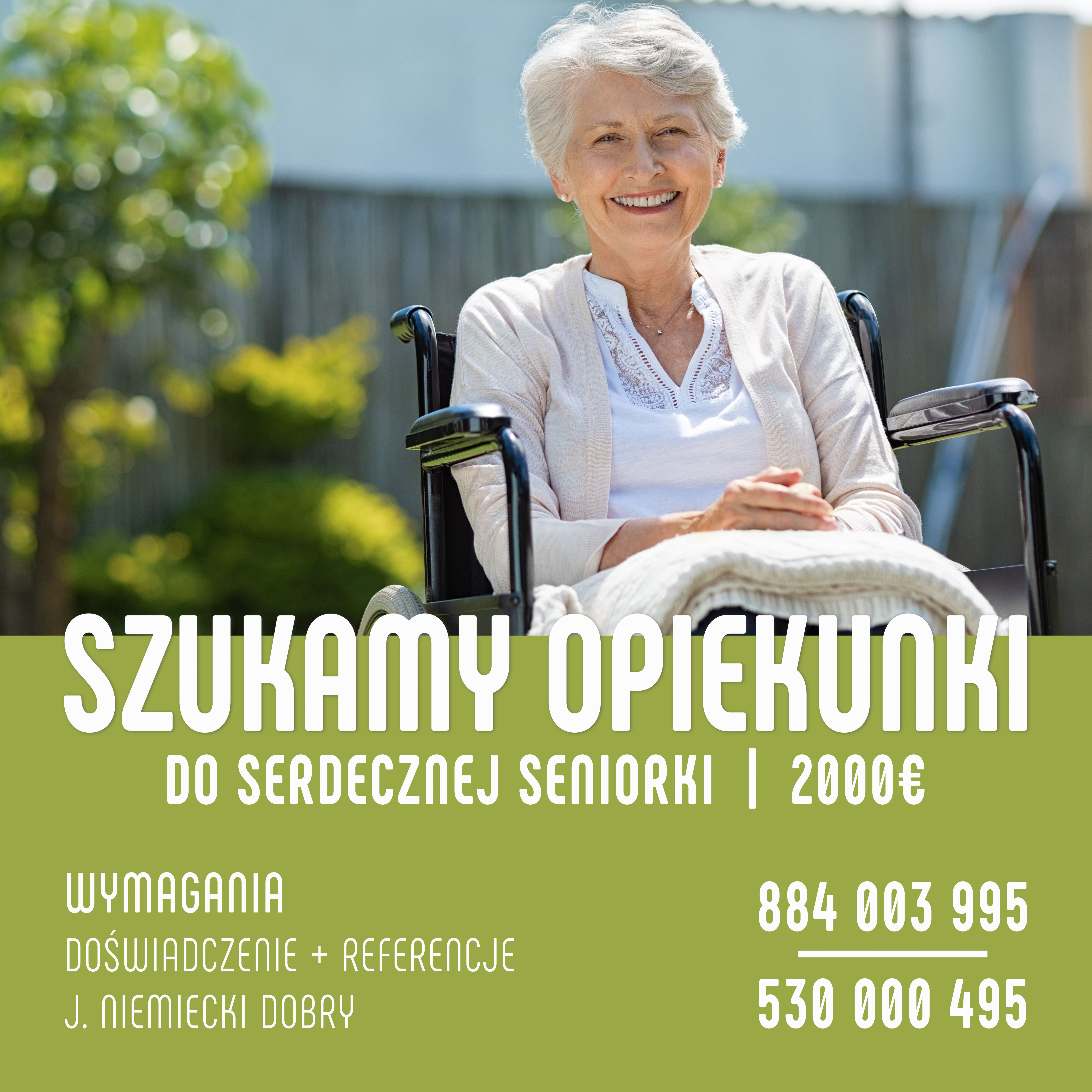 - Poszukujemy serdecznej i empatycznej opiekunki do seniorki na wózku 👵💛 2000€