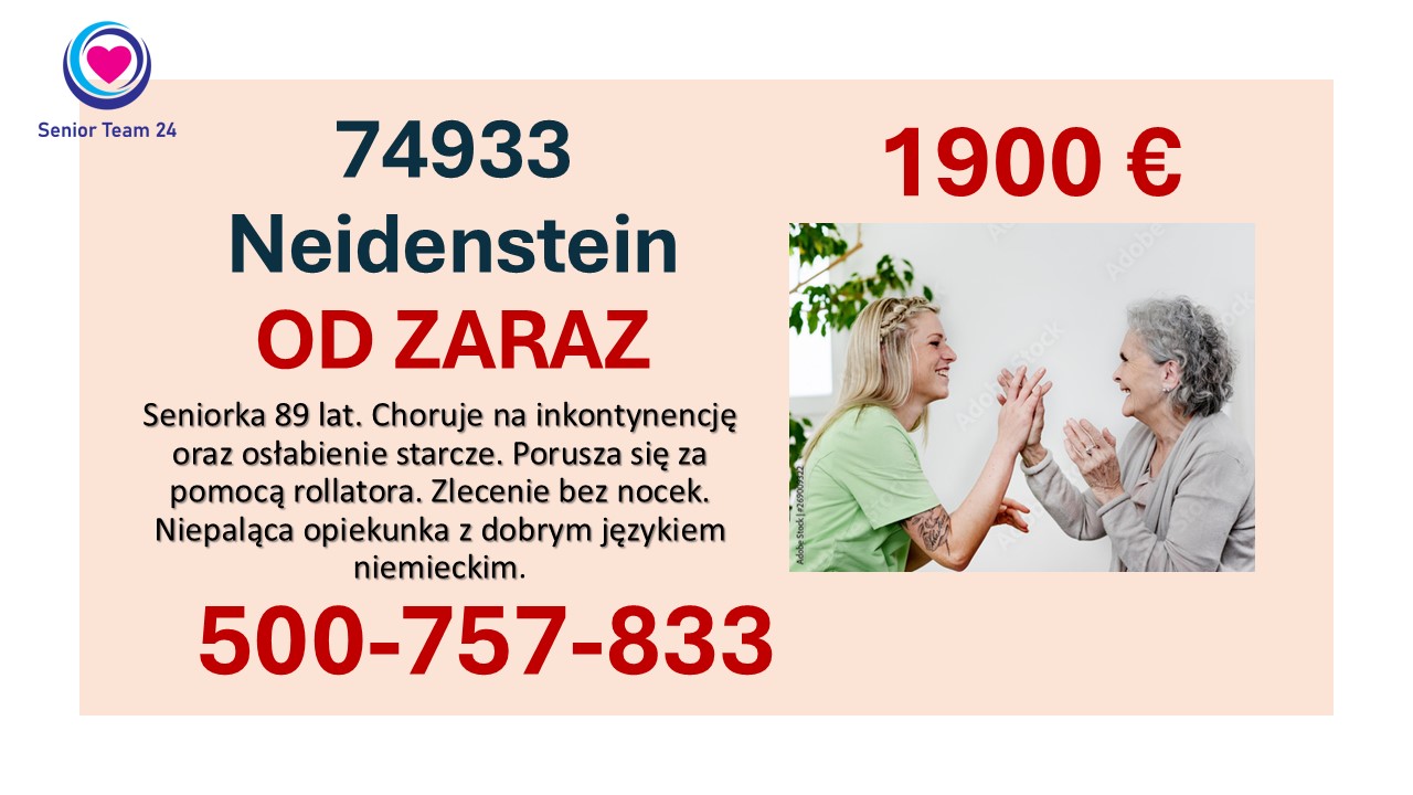 OPIEKUNKA osób starszych do seniorki poruszającej się za pomocą rollatora w 74933 Neidenstein.