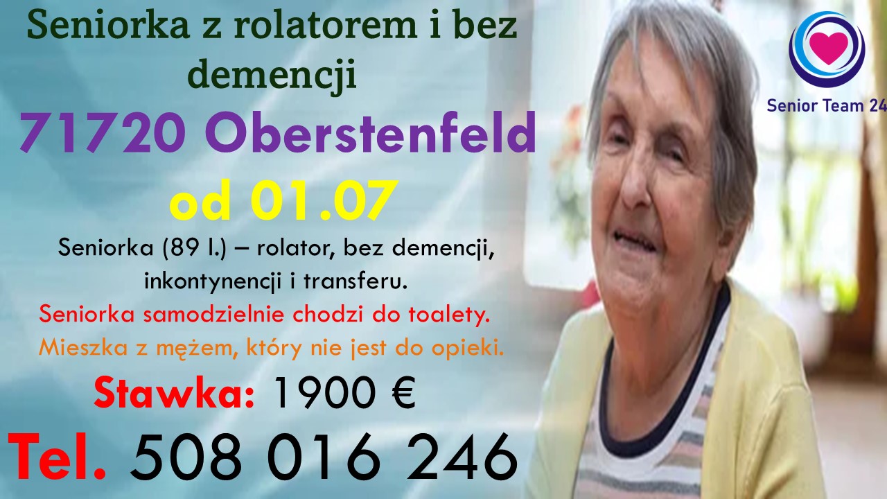 OPIEKUNKA osób starszych od 01.07 z DOBRĄ znajomością j. niemieckiego do seniorki z rolatorem i bez demencji. Seniorka przesypia noce.