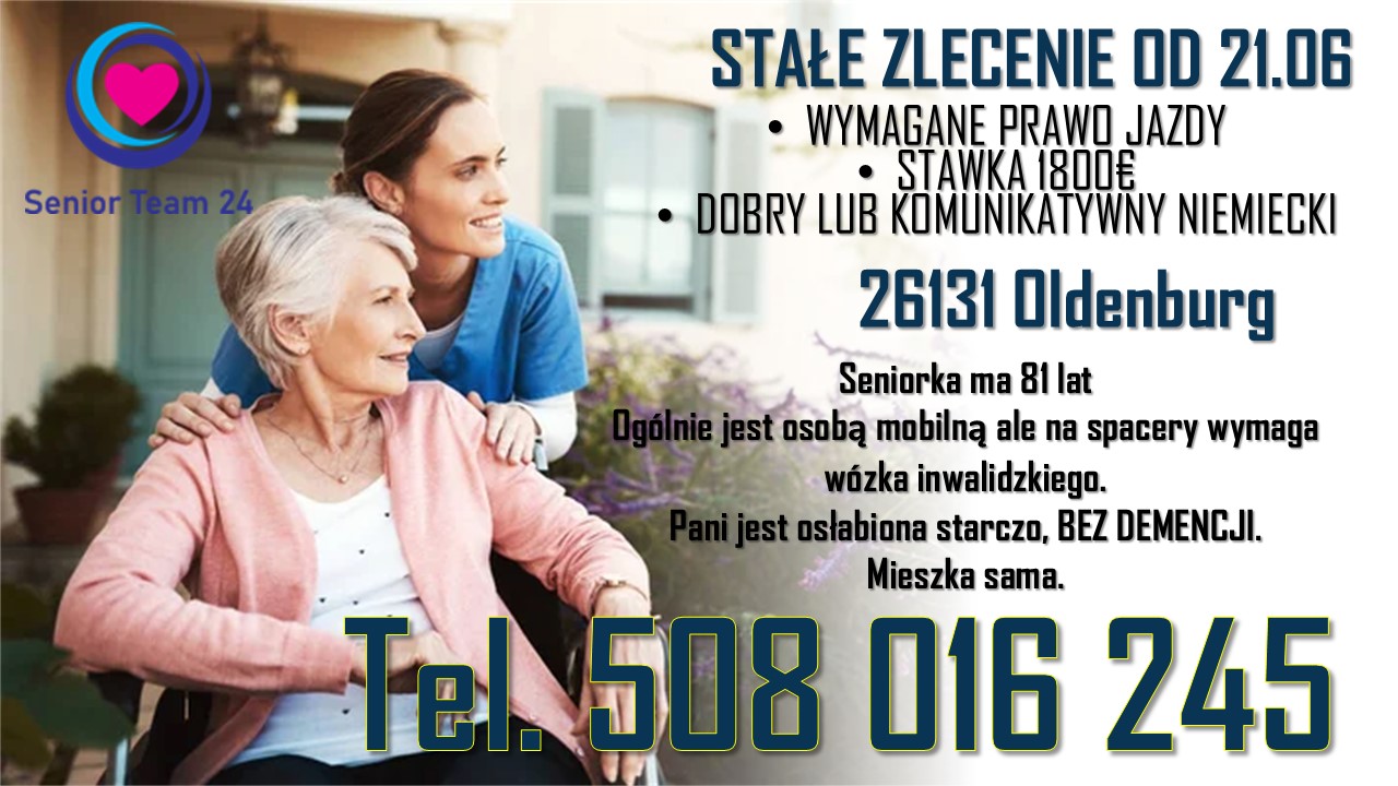 OPIEKUNKA osób starszych od 21.06 z DOBRĄ znajomością j. niemieckiego i prawem jazdy do seniorki mobilnej w 26131 Oldenburg.