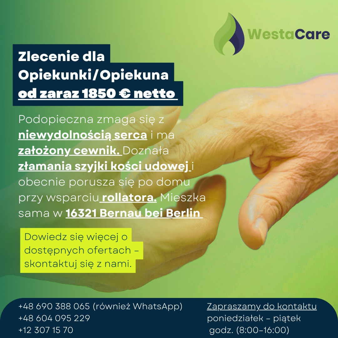 Zlecenie dla Opiekunki/Opiekuna od zaraz 1850 € netto