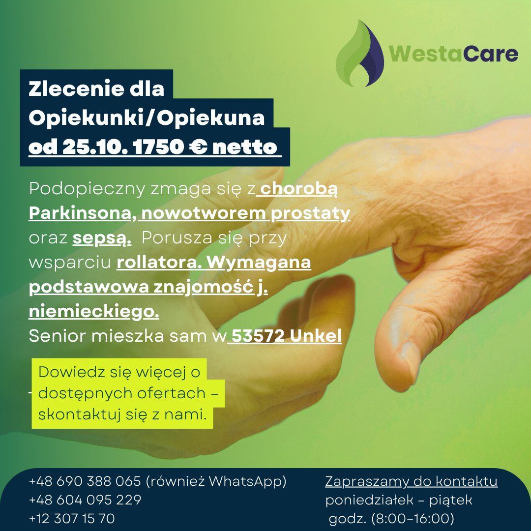 Zlecenie dla Opiekunki/Opiekuna od 25.10. 1750 € netto
