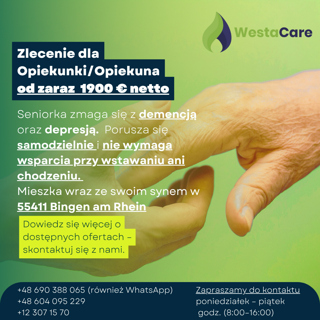 Zlecenie dla Opiekunki/Opiekuna od zaraz 1900 € netto