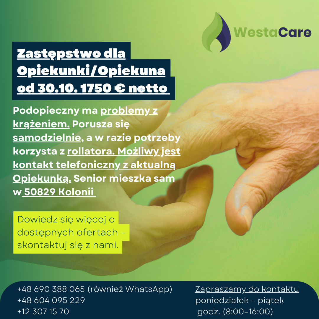Zastępstwo dla Opiekunki/Opiekuna od 30.10. 1750 € netto