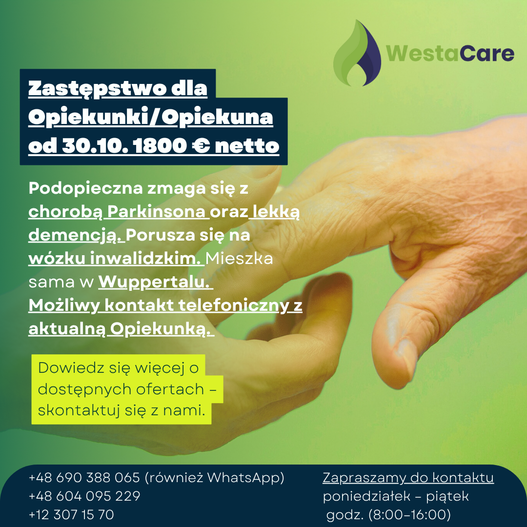 Zastępstwo dla Opiekunki/Opiekuna od 30.10. 1800 € netto