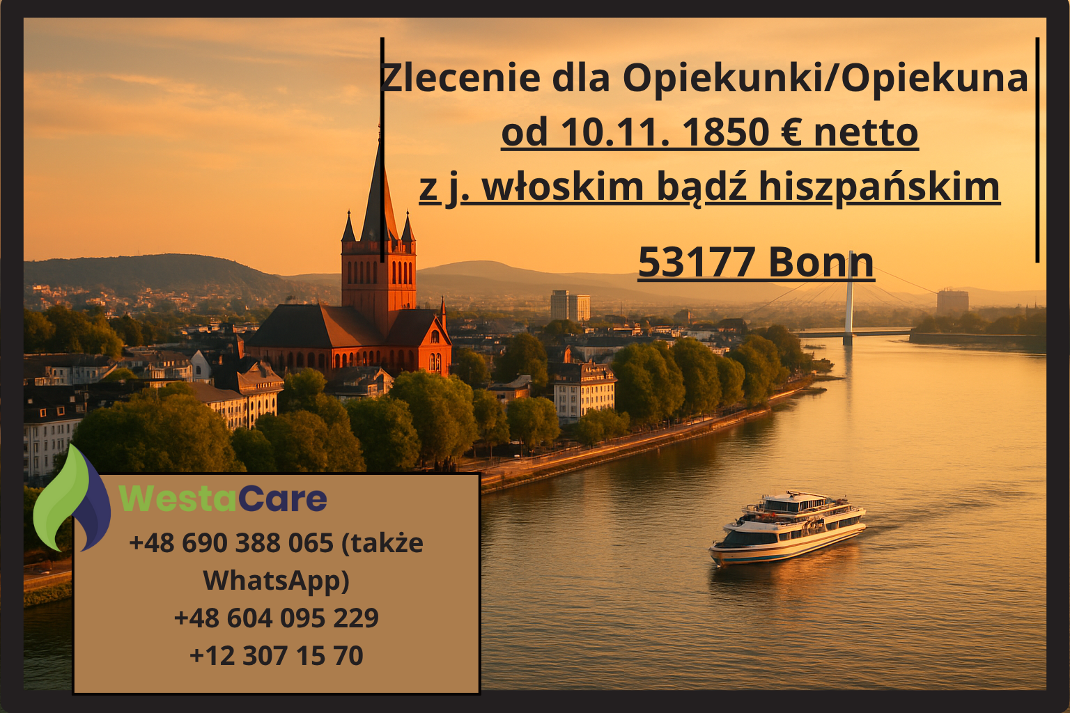Zlecenie dla Opiekunki/Opiekuna od 10.11. 1850 € netto