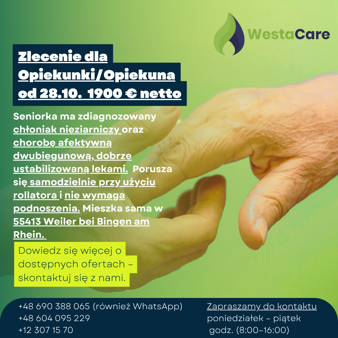 Zlecenie dla Opiekunki/Opiekuna od 28.10. 1900 € netto