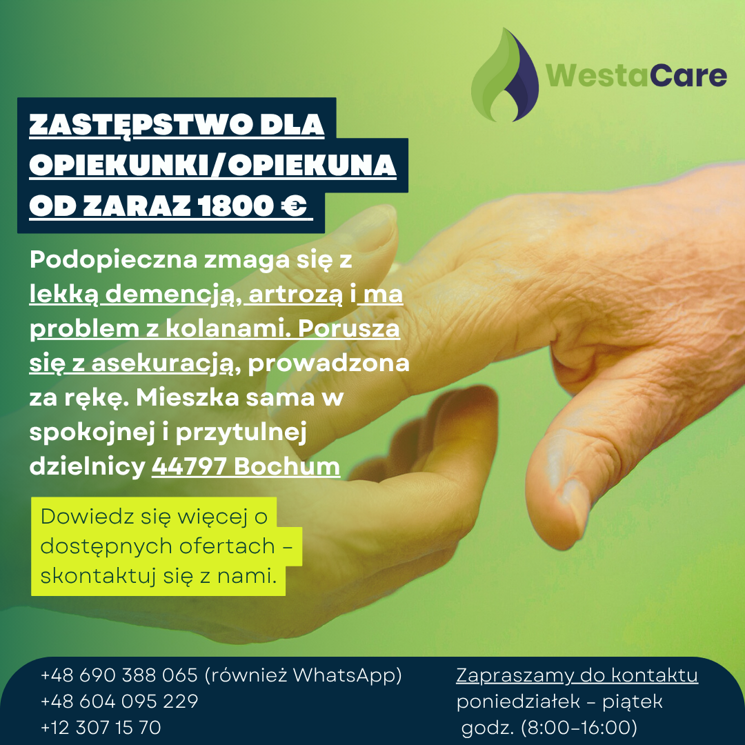 Zastępstwo dla Opiekunki/Opiekuna od zaraz 1800 € netto
