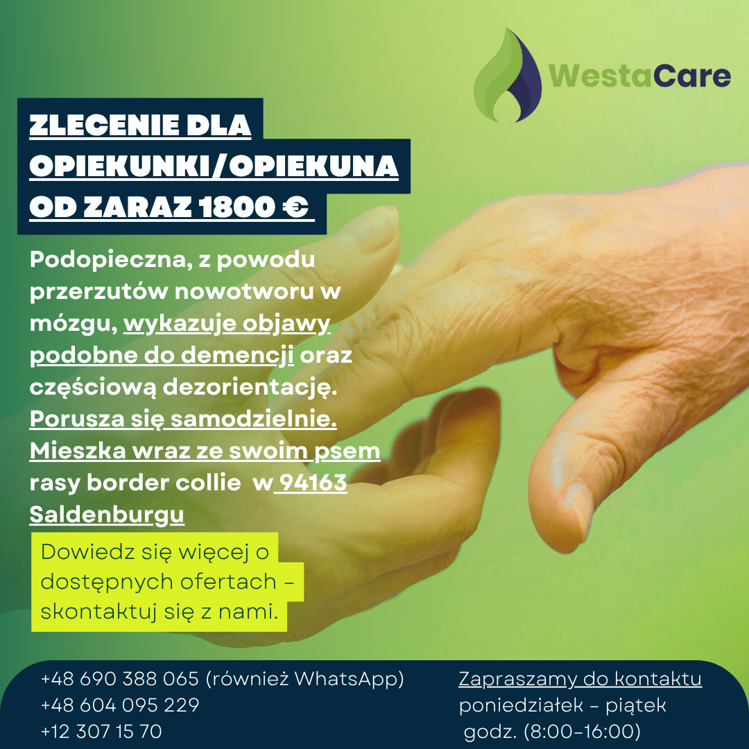 Zlecenie dla Opiekunki/Opiekuna od zaraz 1800 €