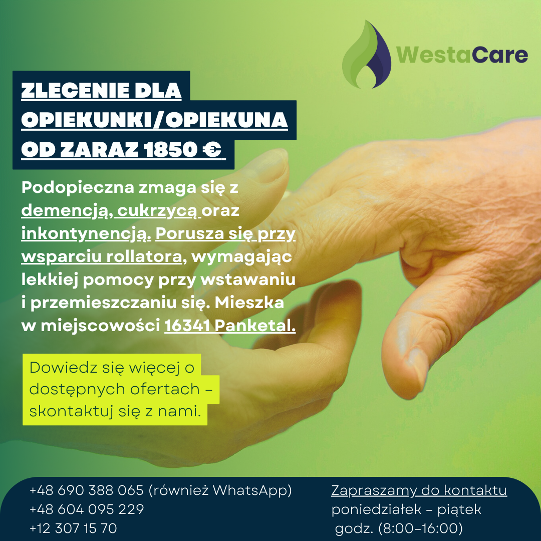 Zlecenie dla Opiekunki/Opiekuna od zaraz 1850 € netto