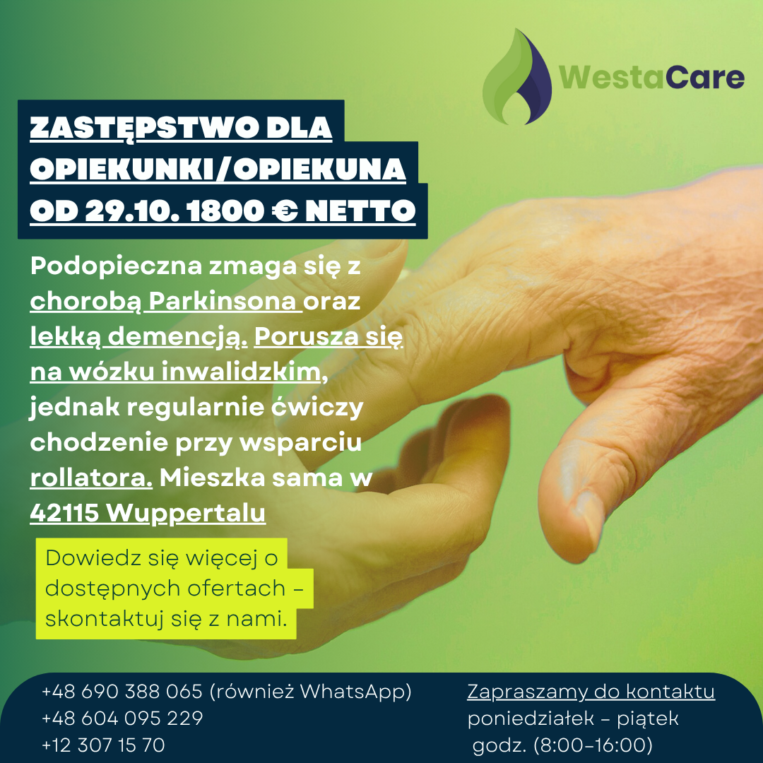 Zastępstwo dla Opiekunki/Opiekuna od 29.10. 1800 € netto
