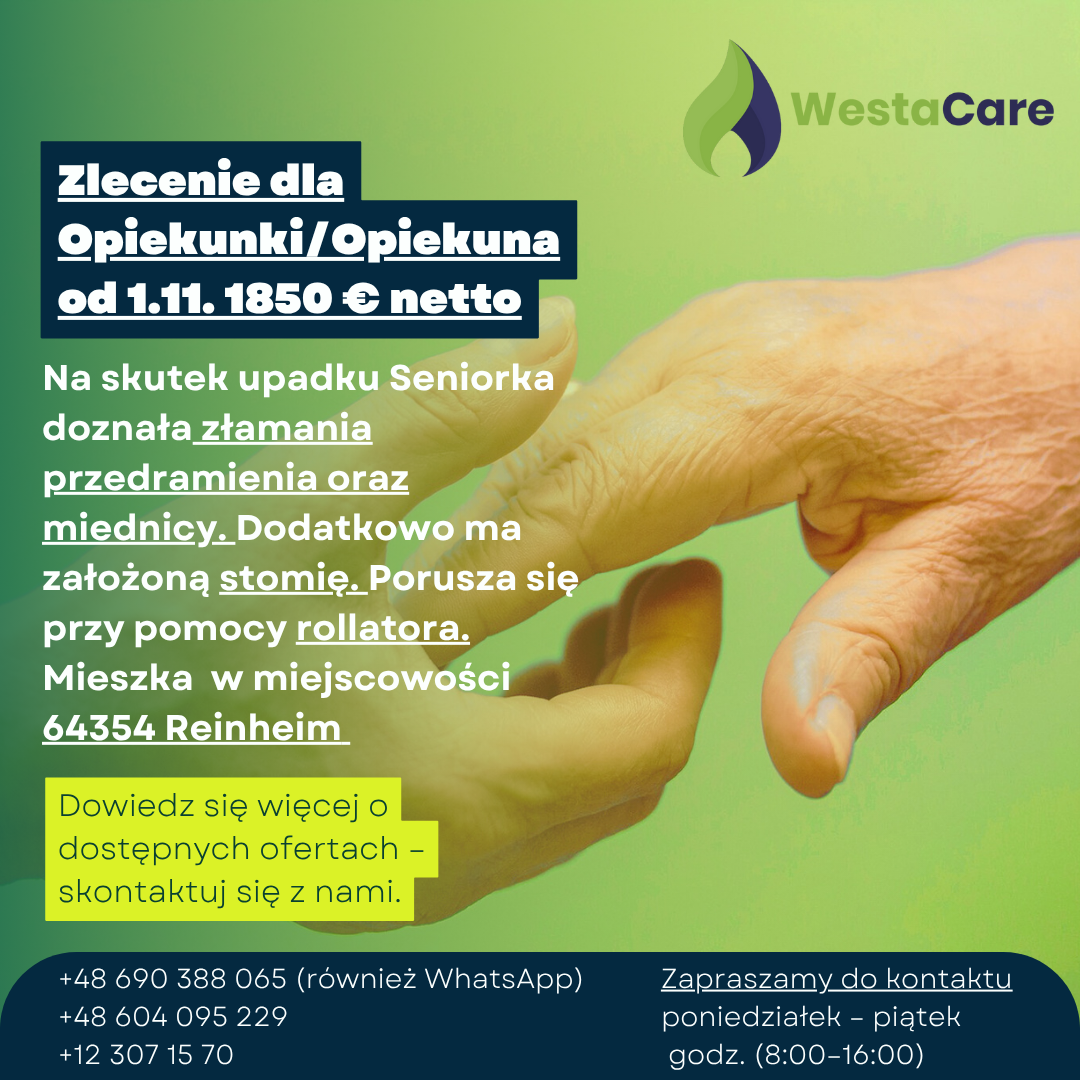 Zlecenie dla Opiekunki/Opiekuna od 1.11. 1850 € netto