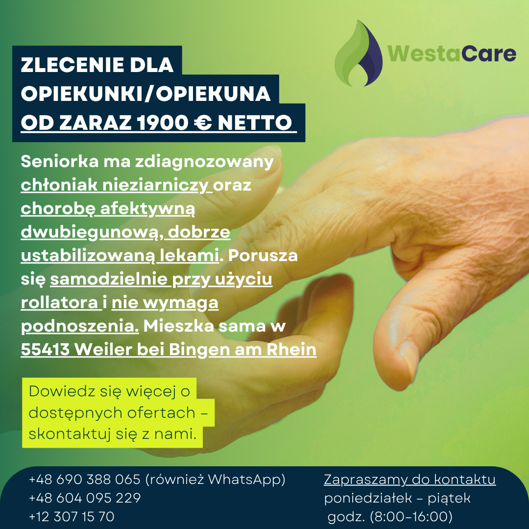 Zlecenie dla Opiekunki/Opiekuna od zaraz 1900 € netto