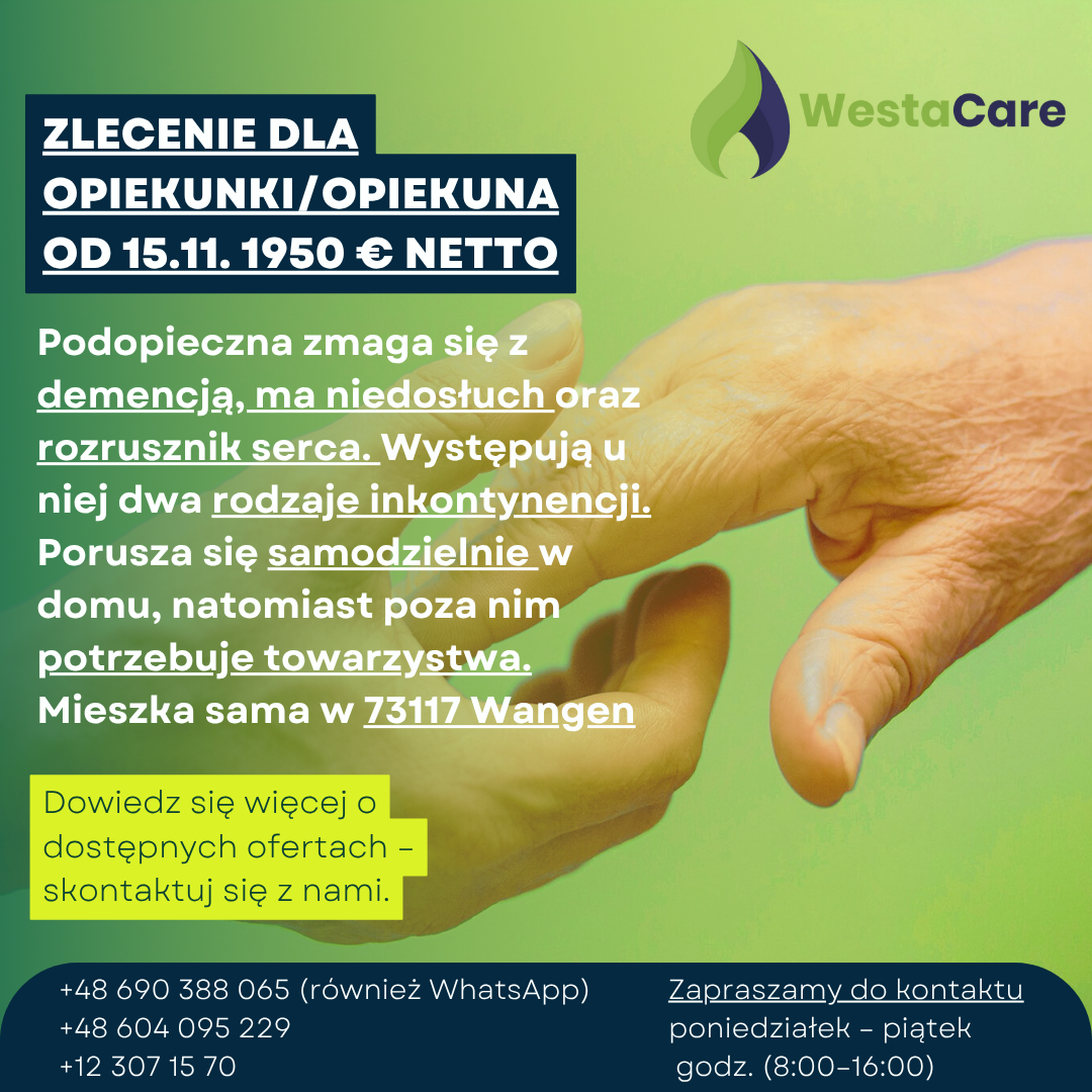 Zlecenie dla Opiekunki/Opiekuna od 15.11. 1950 € netto
