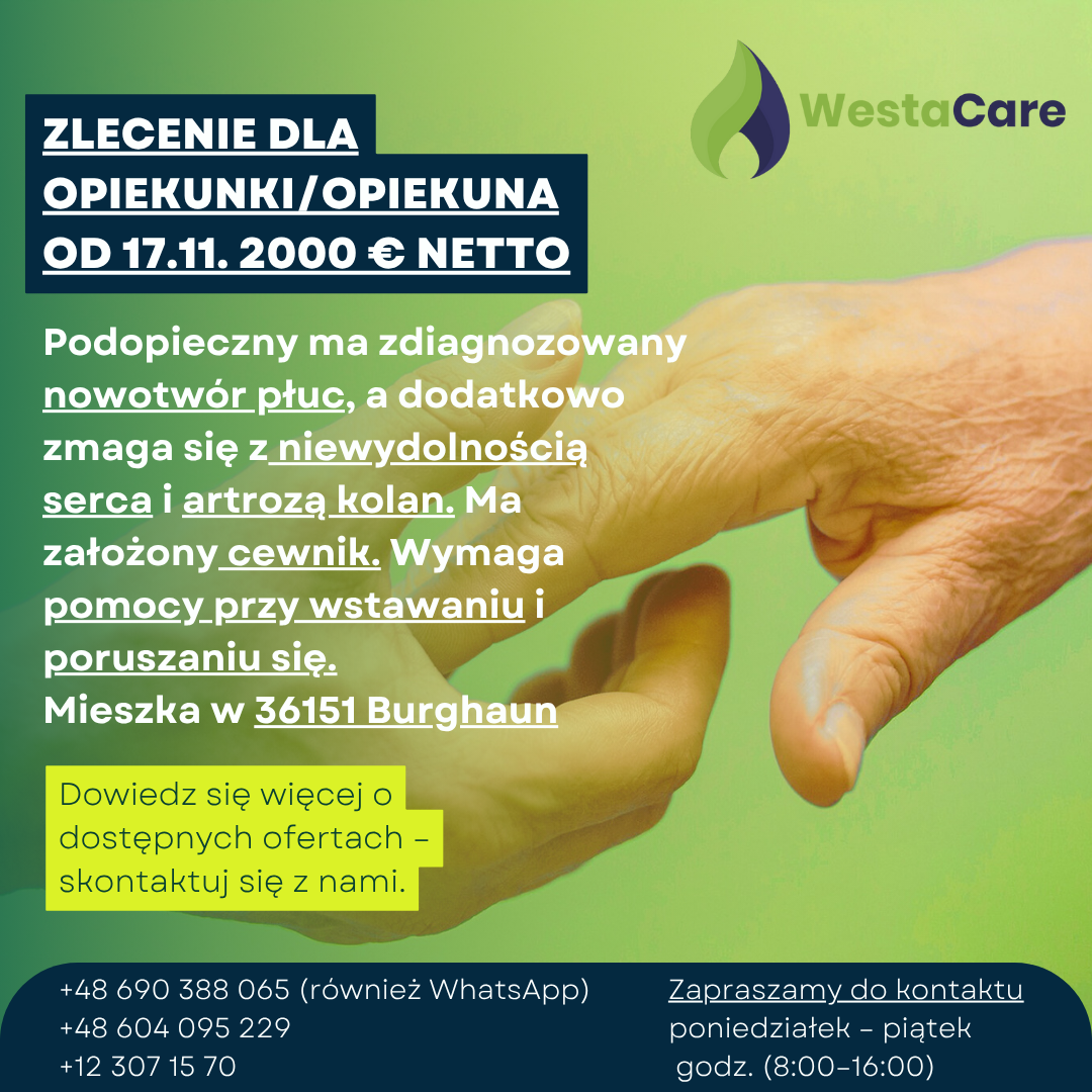 Zlecenie dla Opiekunki/Opiekuna od 17.11. 2000 € netto