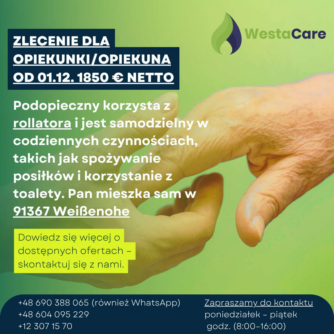 Zlecenie dla Opiekunki/Opiekuna od 01.12. 1850 € netto