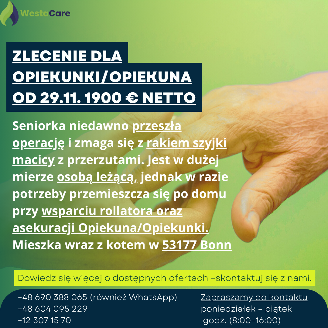 Zlecenie dla Opiekunki/Opiekuna od 29.11. 1900 € netto