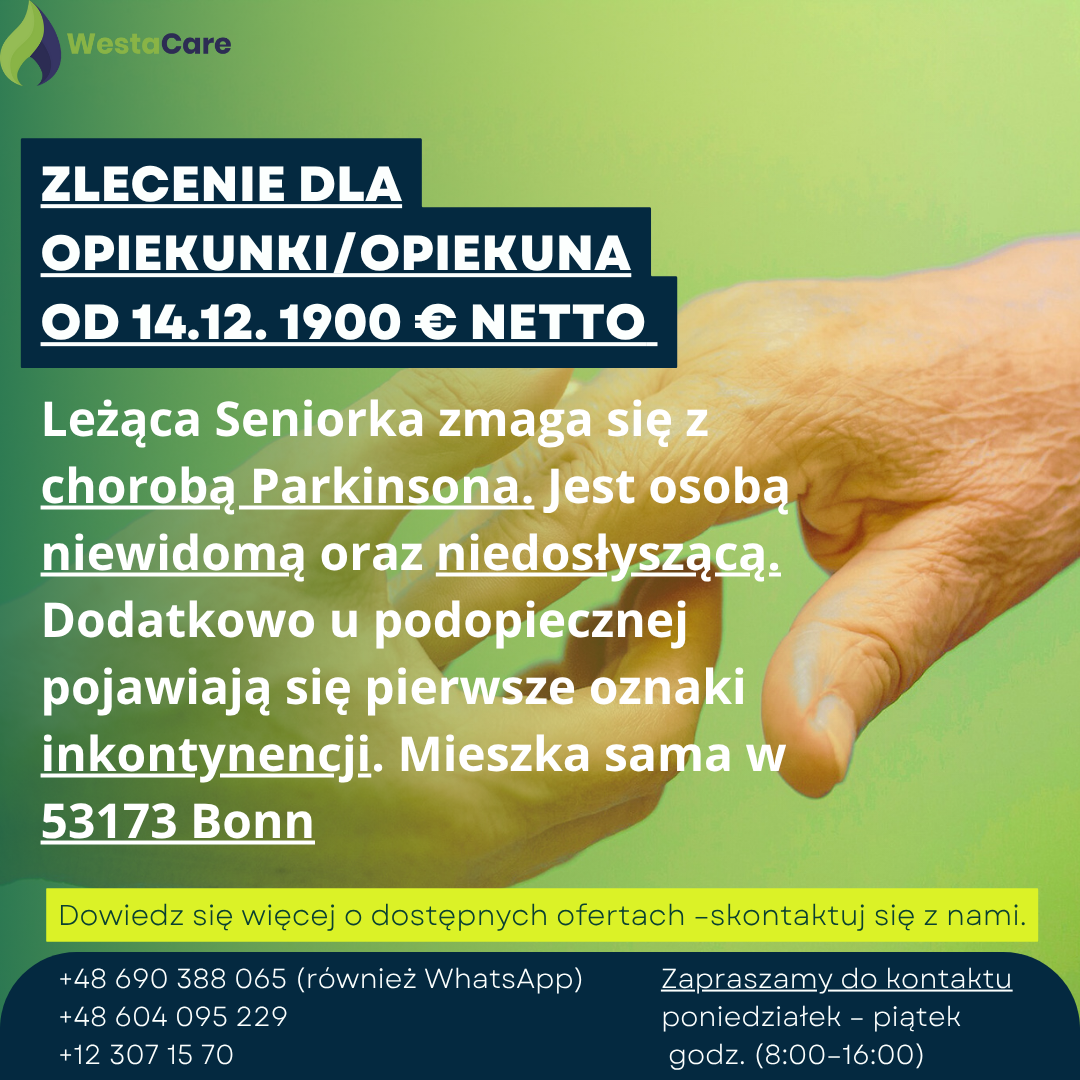 Zlecenie dla Opiekunki/Opiekuna od 14.12. 1900 € netto