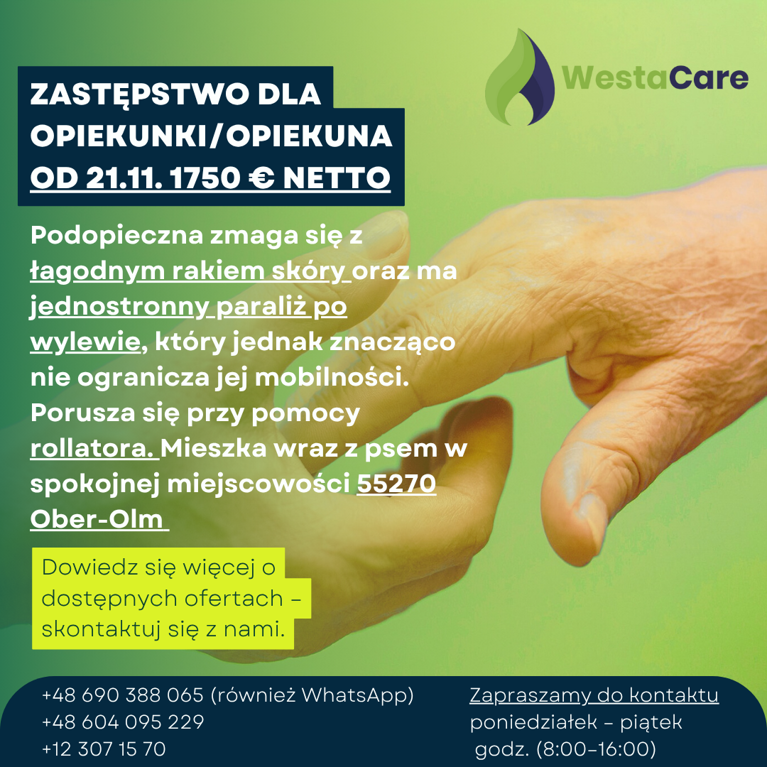 Zastępstwo dla Opiekunki/Opiekuna od 21.11. 1750 € netto