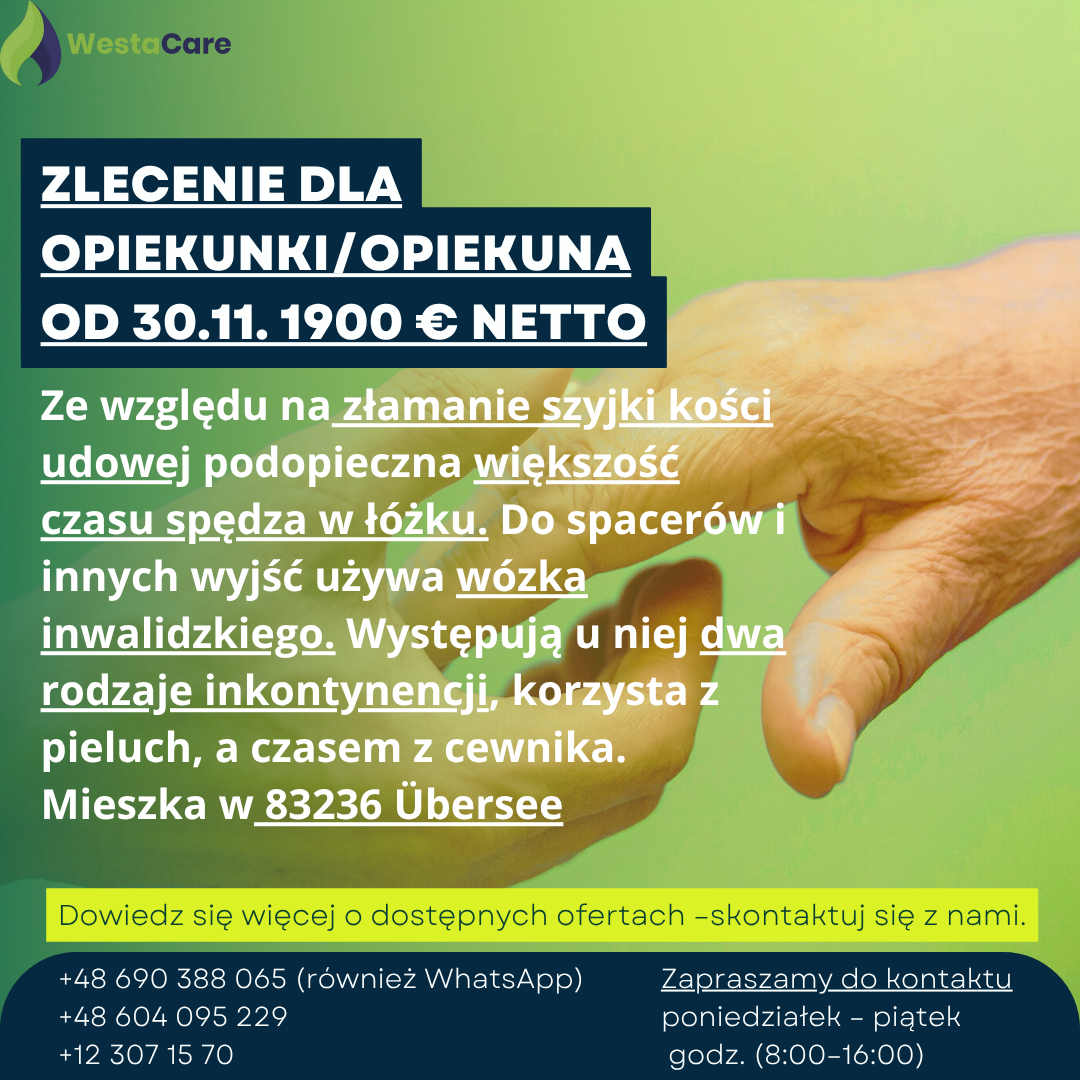 Zlecenie dla Opiekunki/Opiekuna od 30.11. 1900 € netto