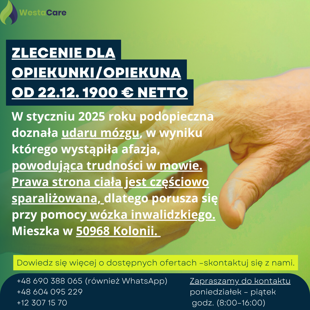 Zlecenie dla Opiekunki/Opiekuna od 22.12. 1900 € netto
