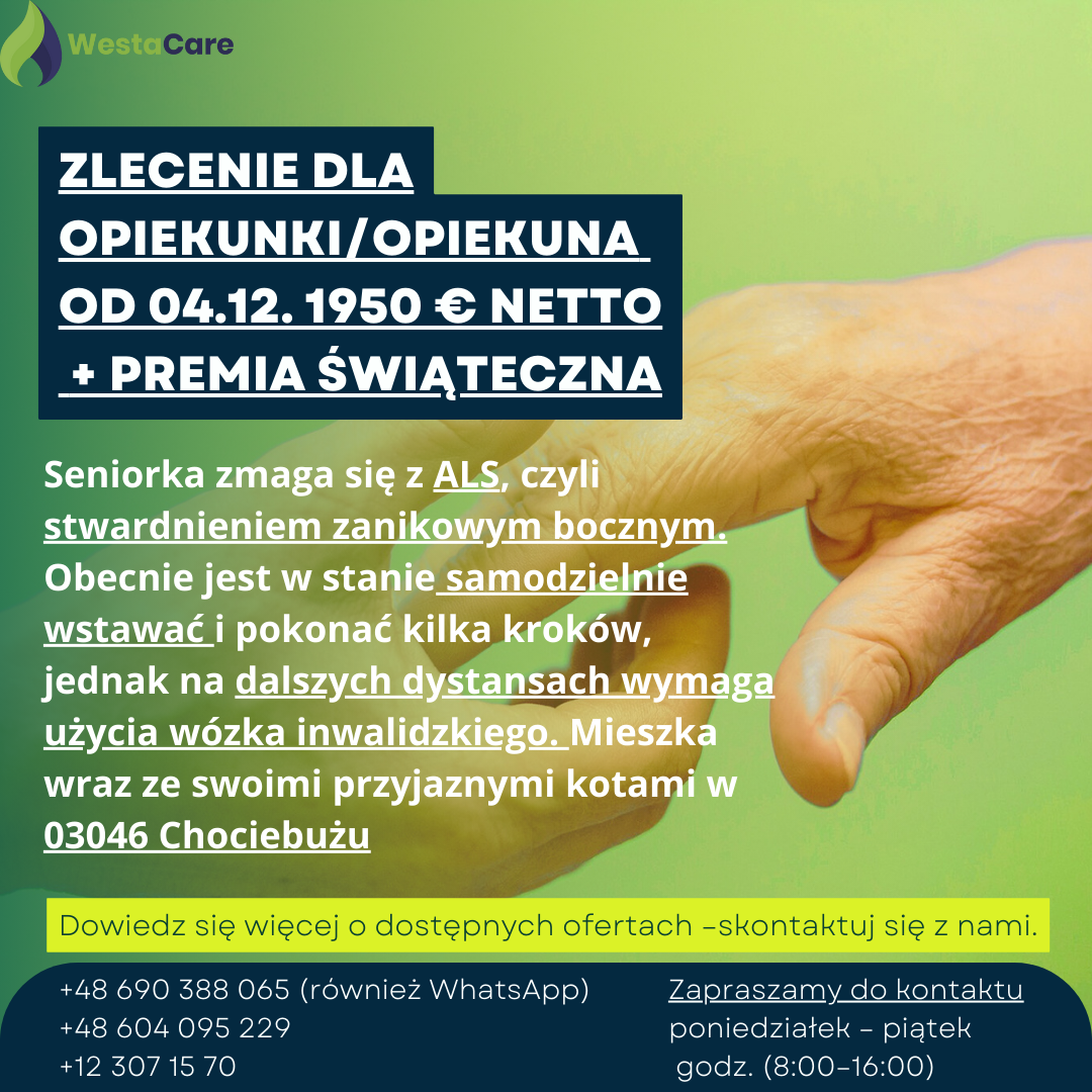 Zlecenie dla Opiekunki/Opiekuna od 04.12. 1950 € netto + Premia Świąteczna