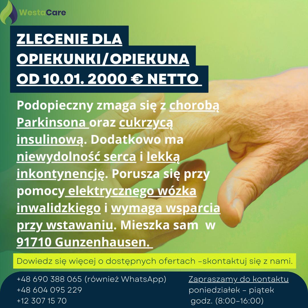 Zlecenie dla Opiekunki/Opiekuna od 10.01. 2000 € netto