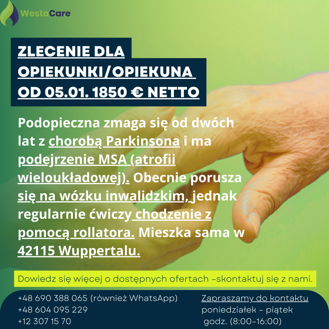 Zlecenie dla Opiekunki/Opiekuna od 05.01. 1850 € netto
