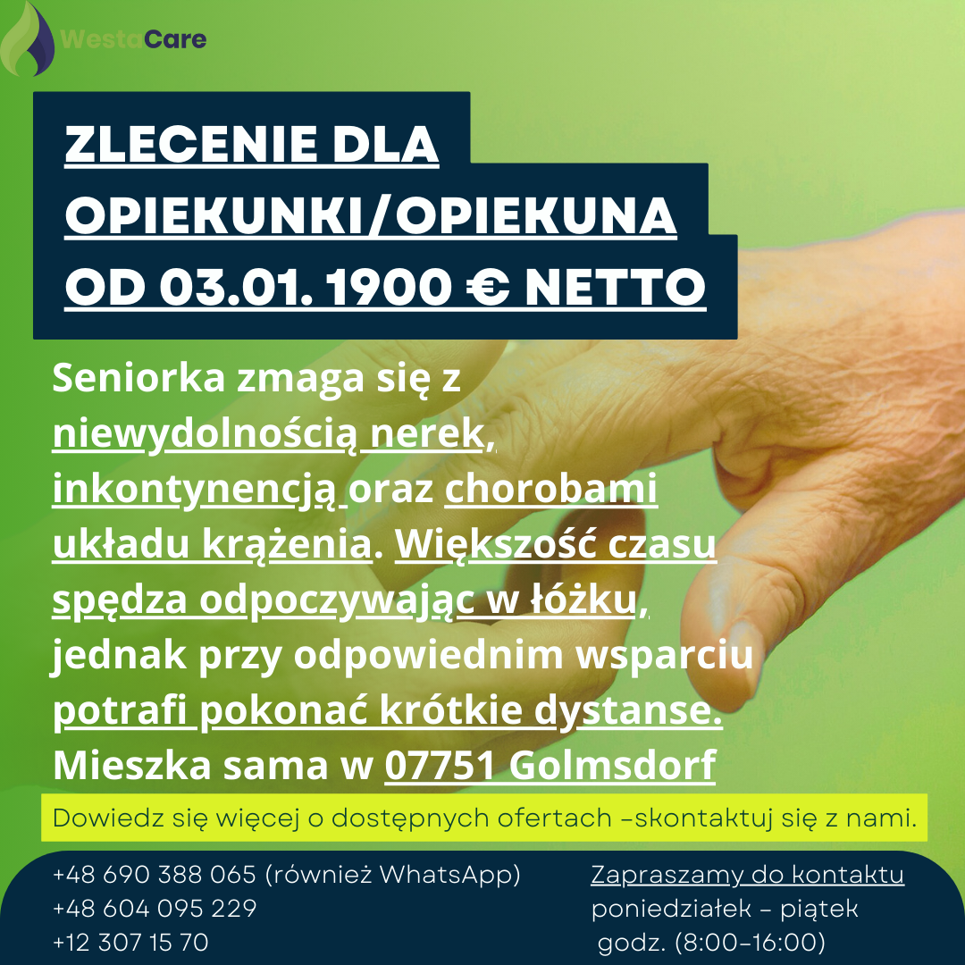 Zlecenie dla Opiekunki/Opiekuna od 03.01. 1900 € netto