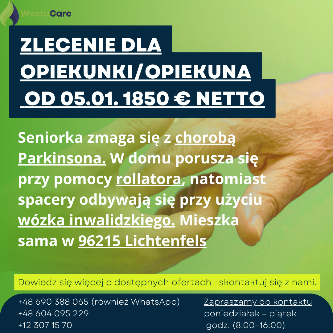 Zlecenie dla Opiekunki/Opiekuna od 05.01. 1850 € netto