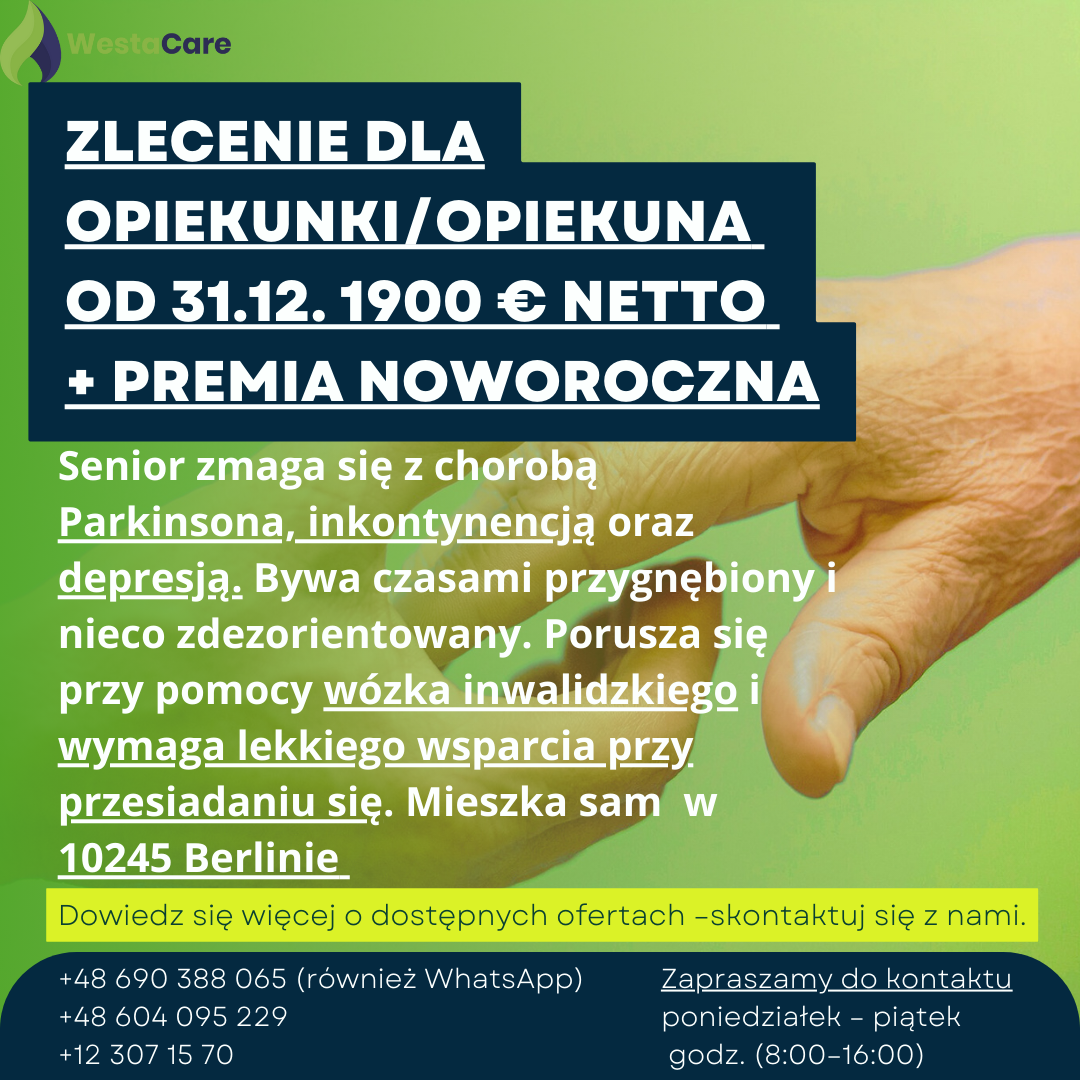 Zlecenie dla Opiekunki/Opiekuna od 31.12. 1900 € netto + Premia Noworoczna